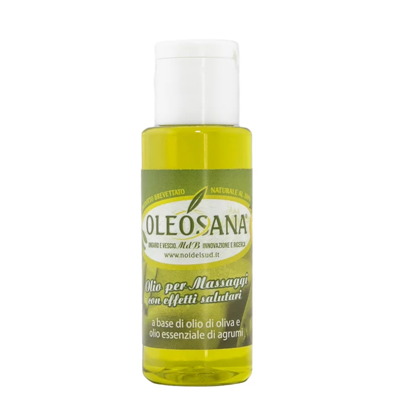 Olio corpo da massaggio Oleosana 30 ml a base di Olio di Oliva arricchito con Olio essenziale naturale di limone.